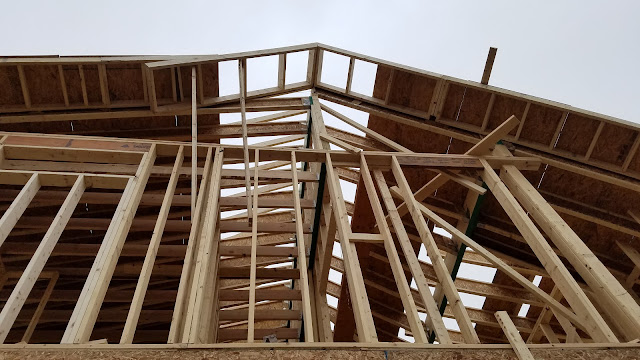 This didn't happen today but I didn't post yesterday. They completed the bottom of the interior basement stair landing. The stairs have to do a 90° at the very bottom so that they remain inside the future hallway.
